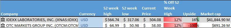 For the time being, I intend to remain on the sidelines unless a truly exceptional opportunity emerges. Nevertheless, I continue to monitor the markets for any potential investments, and during this period, two intriguing companies came onto my radar: OTC Markets Group Inc. (OTCM: OTCM) and Idexx Laboratories (NASD: IDXX).