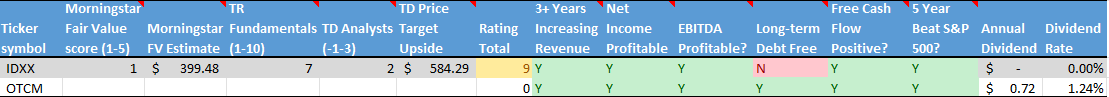 Regarding IDXX, while the company holds promise, the stock is considered overpriced, trading at a premium. This consideration prompted me to pass on IDXX, as it does not align with my valuation criteria.